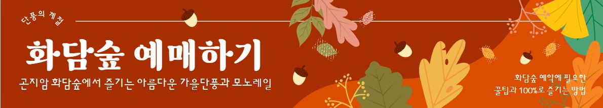 가을에 가장 인기 있는 명소는 바로 경기도 광주에 위치한 생태수목원인 화담숲을 들 수 있습니다. 생태수목원이라서 사계절이 다 아름다운 곳이지만 단풍시즌이나 단풍여행으로 단연 손꼽히는 곳으로 성수기 때는 화담숲을 예약하기가 쉽지 않습니다. 얼마 전 가을 성수기 온라인 예약을 시작하였습니다. 화담숲을 방문하고자 하는 계획이 있으시다면 화담숲 예매 성공 팁과 예매 실패 시 잔여 좌석을 예매할 수 있는 팁을 공유해드리고자 합니다. 가장 중요한 것은 단풍이 절정시기에 화담숲을 방문하는 것이 중요하니 아래에서 바로 확인해 보세요!
