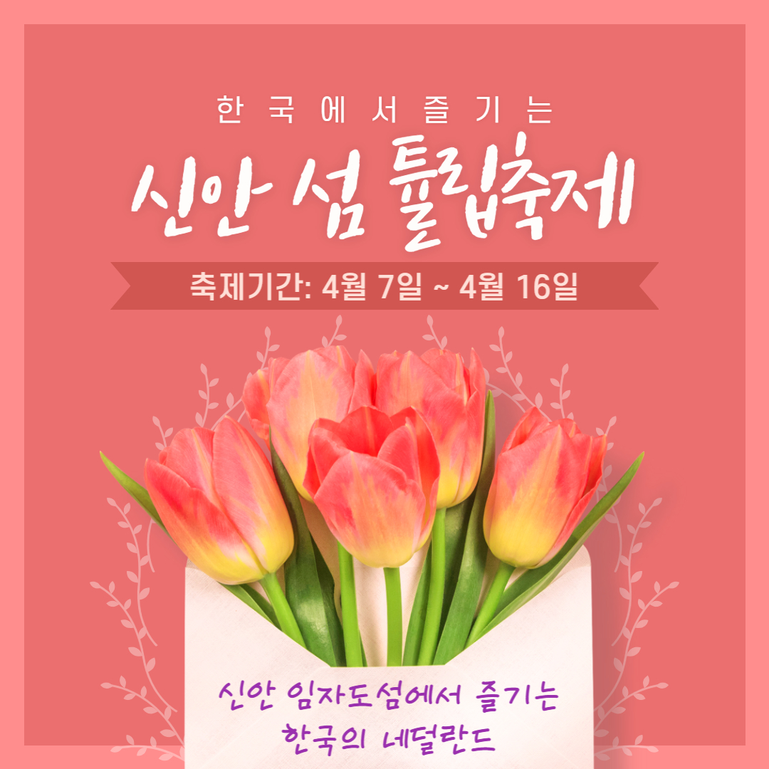 한국의 작은 네덜란드가 열렸습니다. 바로 신안 튤립축제를 말합니다. 축제에 가시기 전에 미리 필요한 축제기간, 입장료, 주차장 등 필요한 정보들을 정리해두었으니 가시기 전에 미리 확인해 보고 가세요. 아무것도 없이 축제를 즐기는 것보다 사전에 미리 알고 가시면 시간적인 부분이나 비용적이 부분을 생각하고 즐겁게 여행하실 수 있습니다. 지금부터 신안튵립축제에 대해서 알아보도록 하겠습니다.