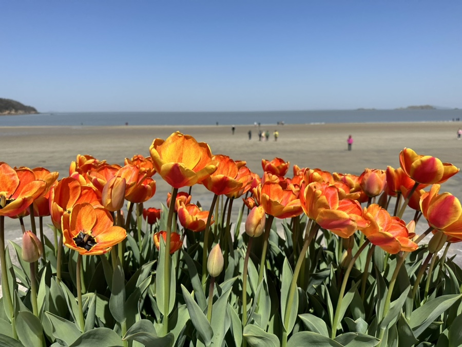마지막으로 노을 지는 해변에서 해변에 있는 튤립과 함께 축제를 마무리하시면 됩니다. 해변에서 즐기는 튤립은 또 다른 느낌입니다.