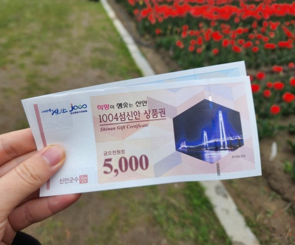 입장권이 비싸다고 생각하실 수도 있는데 유료 관람권을 구매하신 어른은 5,000원 상당의 신안사랑상품권을 줍니다. 행사장에 들어가시면 축제 부스가 많이 있는데 거기서 현금처럼 사용할 수 있으니 정말 좋습니다. 실질적으로는 만원을 결제했지만 5천 원으로 맛난 거 사 먹으라고 용돈을 받을 셈이죠. 결국 입자료는 5천 원인 셈입니다.