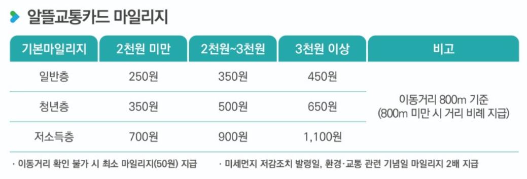 📌알뜰교통카드 마일리지는 대중교통 이용금액의 최대 90%까지 지급받을 수 있음.