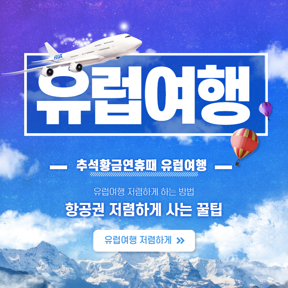 올해 다가올 황금연휴를 유럽여행을 해보시는 건 어떤가요? 올해 추석 연휴는 9월 29일부터 10월 1일까지 총 4일이며, 10월 3일 개천절과 10월 9일 한글날이 끼어 있어, 연차나 주말 등을 활용한다면 장거리 여행인 유럽여행이 가능합니다. 혹시 계획하고 계신다면 저렴하게 유럽여행을 하는 방법과 항공권을 저렴하게 사는 꿀팁까지 알려드리겠습니다.