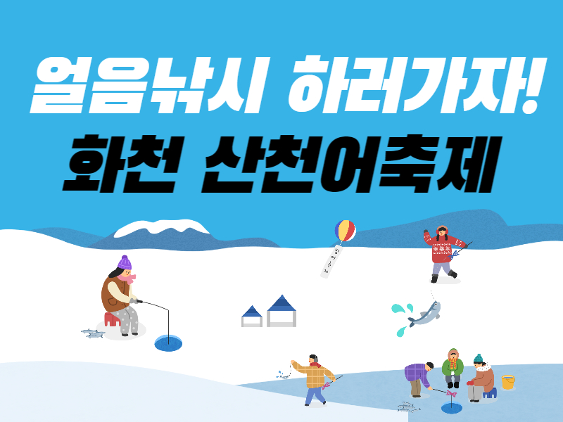 화천 산천어축제는 2023년 1월 7일 토요일 ~ 1월 29일 일요일까지 23일간 진행됩니다. 또한 선등거리는 2022년 12월 24일 토요일 ~ 2023년 2월 5일 일요일까지 운행되니 축제를 놓치지마세요!