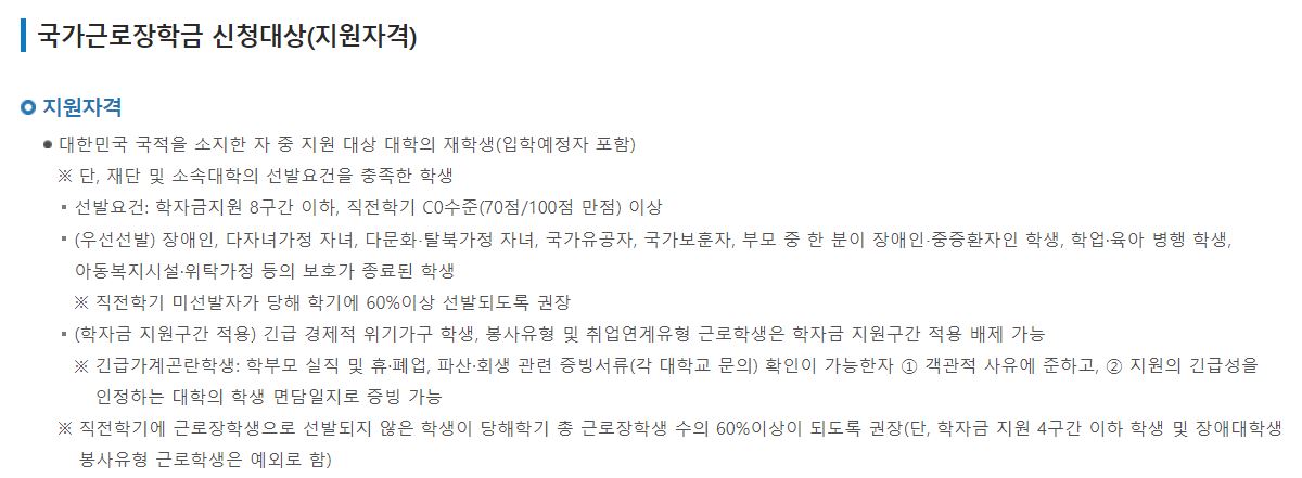 국가 근로 장학금 신청대상자