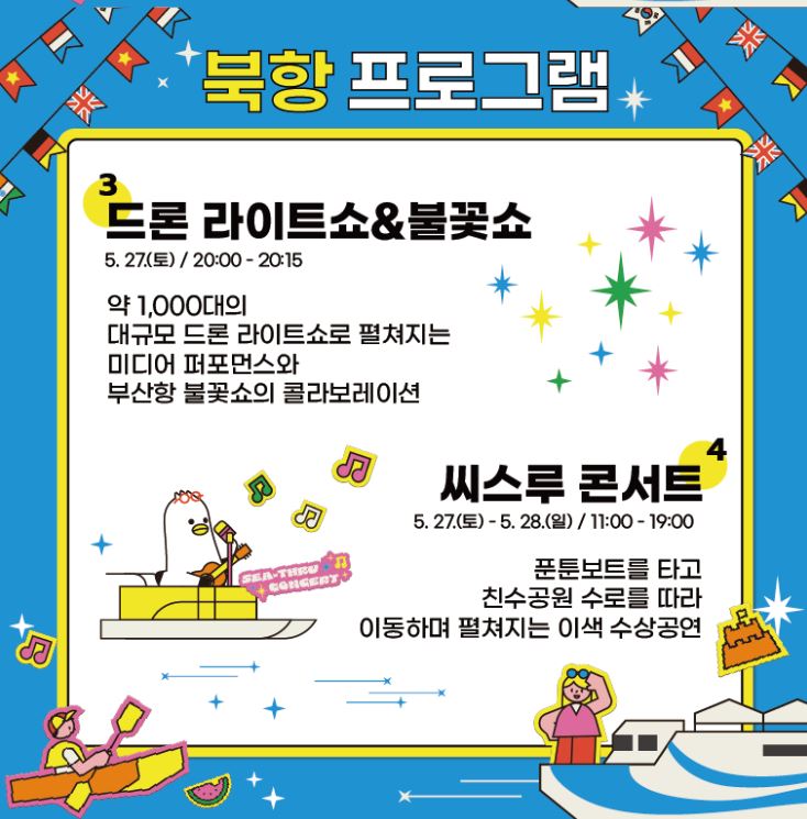 🟨부산항 축제는 2023년 5월 27일 토요일 ~ 2023년 5월 28일 일요일 단 2일간 열리는 축제입니다.