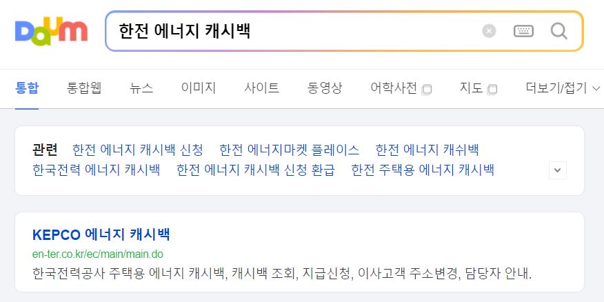 1. 한전 에너지캐시백 홈페이지 접속합니다.