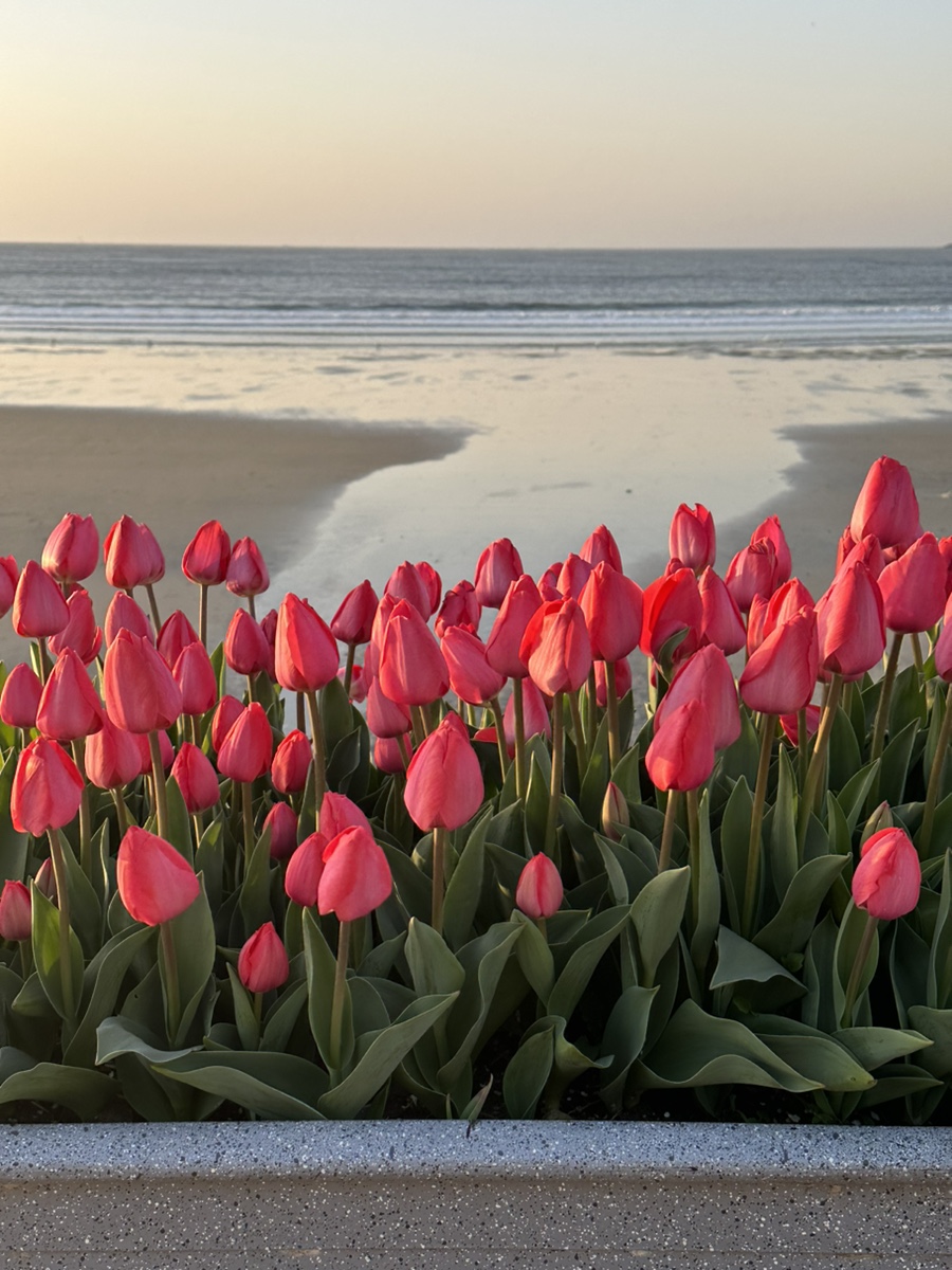 마지막으로 노을 지는 해변에서 해변에 있는 튤립과 함께 축제를 마무리하시면 됩니다. 해변에서 즐기는 튤립은 또 다른 느낌입니다.