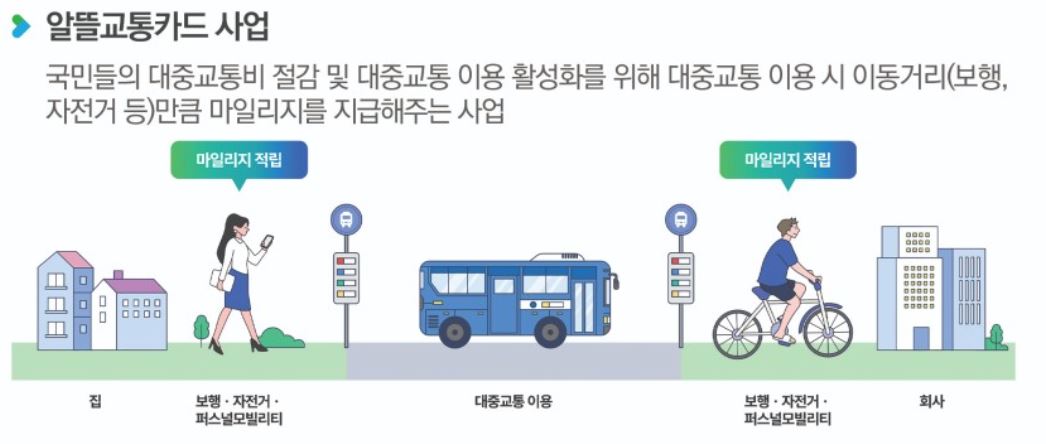 최근에 버스비, 지하철 같은 대중교통 요금이 줄줄이 인상하면서 이에 따른 부담감도 커지고 있습니다. 매일 나가는 교통비, 부담을 조금이라도 줄일 수 있는 방법을 찾고 계시다면 지금부터 집중해 주세요! 한 달에 최대 6만 6000원을 아낄 수 있는 알뜰교통카드가 있습니다. 알뜰교통카드는 버스나 지하철 같은 대중교통을 이용 시 출발지에서 부터 목적지까지 자전거 이동거리 및 보행거리를 측정해 마일리지를 지급하는 제도입니다. 어떻게 하면 한 달에 최대 6만 6000원을 교통비를 아낄 수 있는지에 관해 가입 및 신청, 이용방법, 혜택 등에 대해서 알아보도록 하겠습니다.