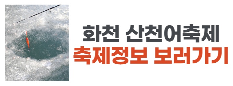 아래에서 산천어축제 바로가기를 누르시면 홈페이지도 바로 들어가서 자세한 내용을 확인하실 수 있습니다. 또한 주말에는 셔틀도 운영한다고 하니 셔틀 운영시간도 홈페이지에서 확인하시기를 바랍니다.