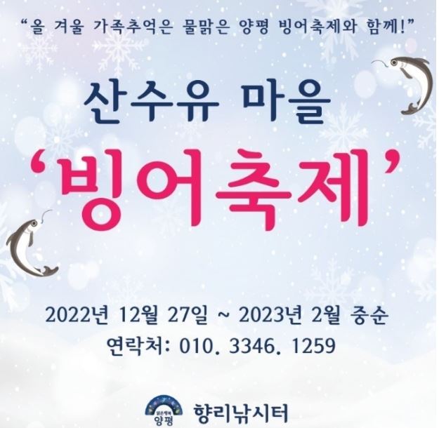 양평은 서울 근교로 수도권에서 접근성이 좋은 곳으로 원래도 인기 많은 곳인데 축제로 인해 사람들의 발길을 이끄는 코스입니다. 겨울철에만 즐길 수 있는 빙어낚시를 체험할 수 있으며 넓은 주차장으로 인해 주차도 편리하게 이용할 수 있습니다. 또한 산수유마을 빙어축제는 개인텐트와 개인장비 및 간단한 화기 사용이 가능한 곳이기 때문에 얼음 위에서 라면을 즐길 수 있습니다. 미취학아동이 무료이기 때문에 가족 단위로 즐기기에 너무 좋은 축제입니다.